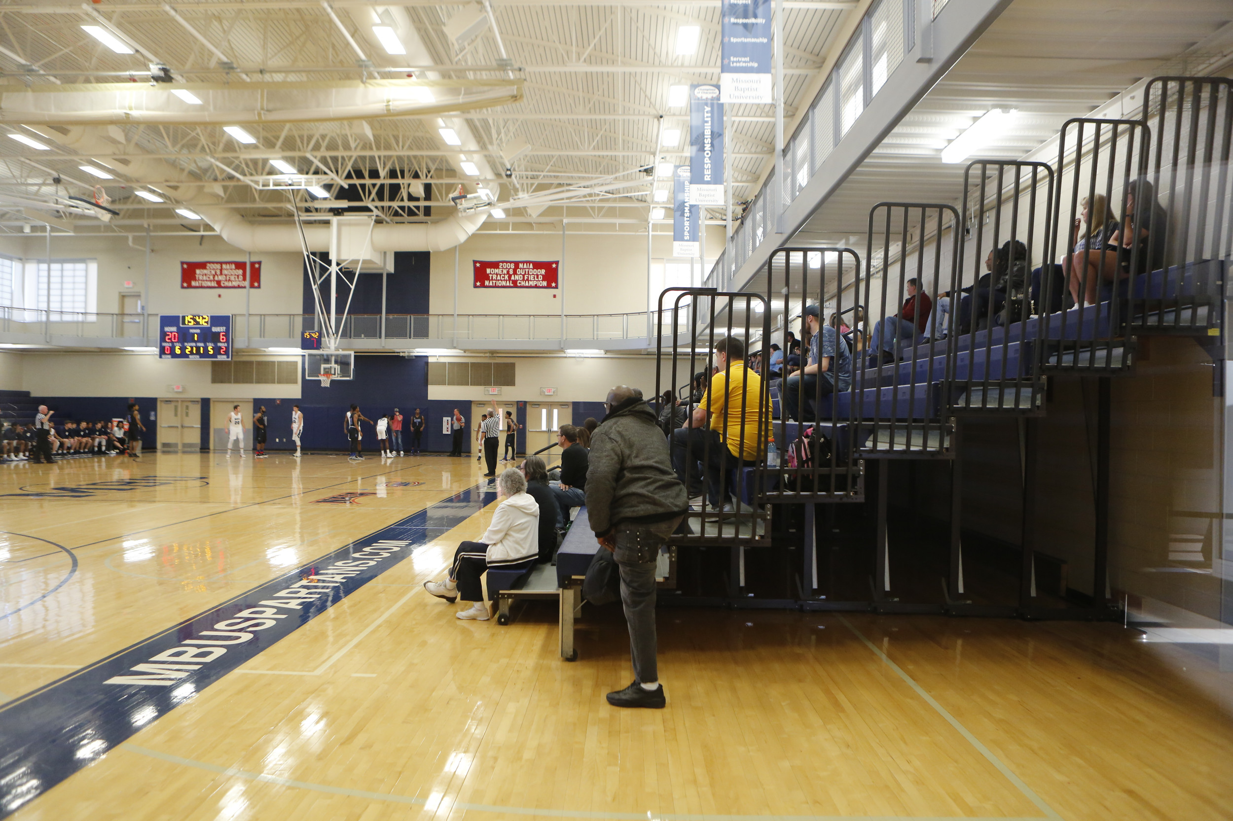 Missouri Baptist is an NAIA school competing in the American Midwest conference. The main gymnasium features a walking track around the perimeter and other fitness facilities in the building.