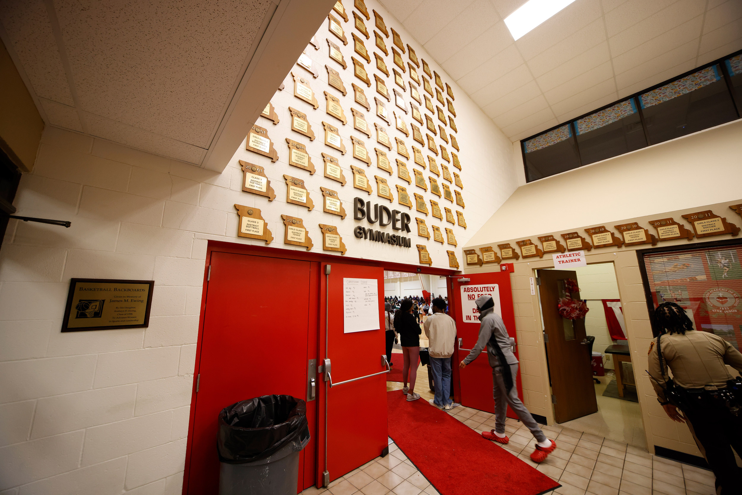 TOWN AND COUNTRY, Mo. — The first thing that strikes you when approaching the doors to the Buder Gymnasium is the 100-plus district plaques adorning the two-story-tall wall.